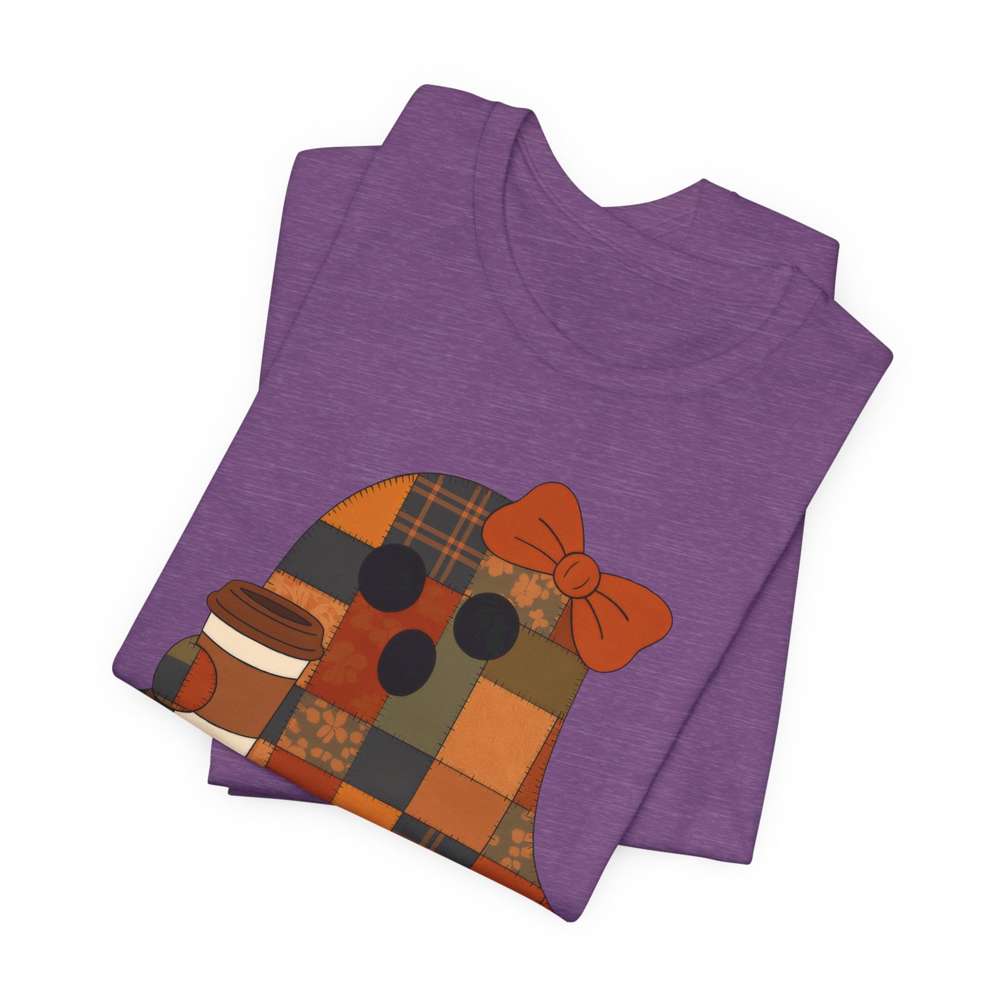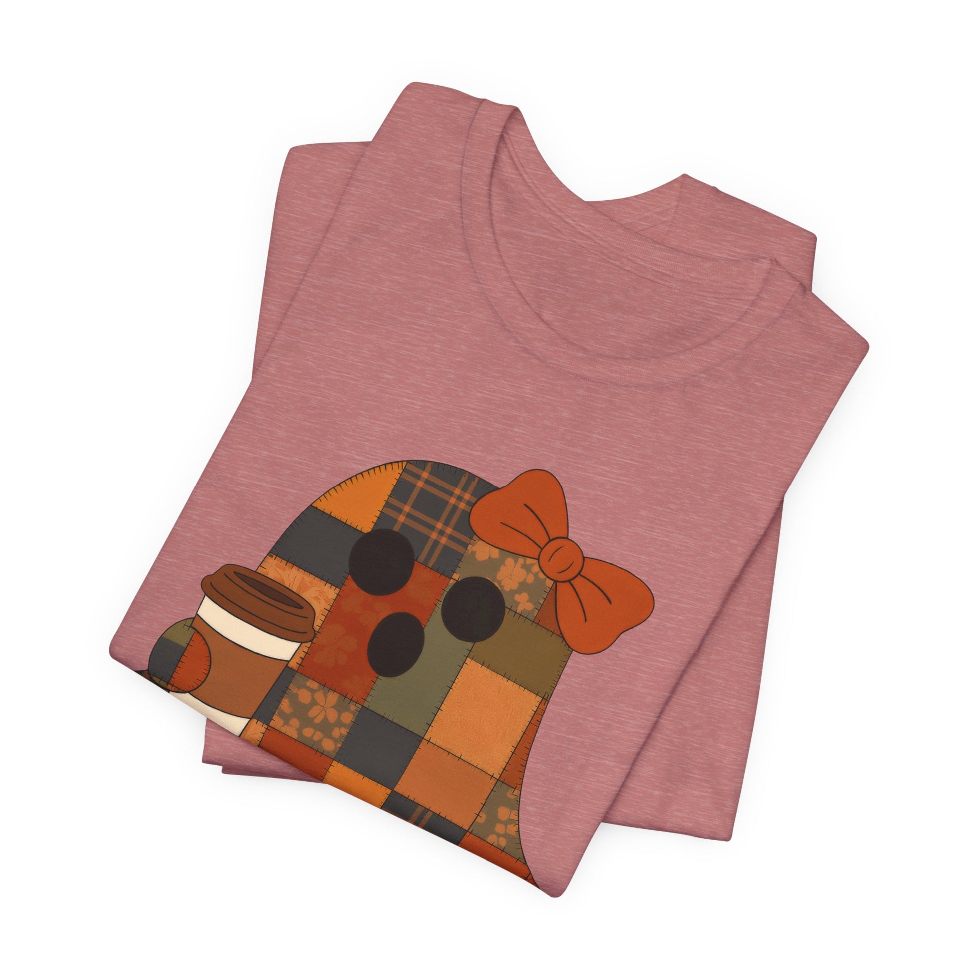 Embrace the cozy charm of fall with this delightful unisex jersey short sleeve tee. Featuring a playful ghost design with a bow and a warm coffee cup, this shirt brings festive warmth to your wardrobe. Perfect for chilly evenings at pumpkin patches, Halloween celebrations, or cozy gatherings with friends. Its lightweight, breathable fabric ensures comfort for all-day wear, making it an ideal companion for relaxing weekends or casual outings. This tee is perfect for anyone who loves autumn vibes, coffee culture, or simply enjoys whimsical fashion. Celebrate fall with style!