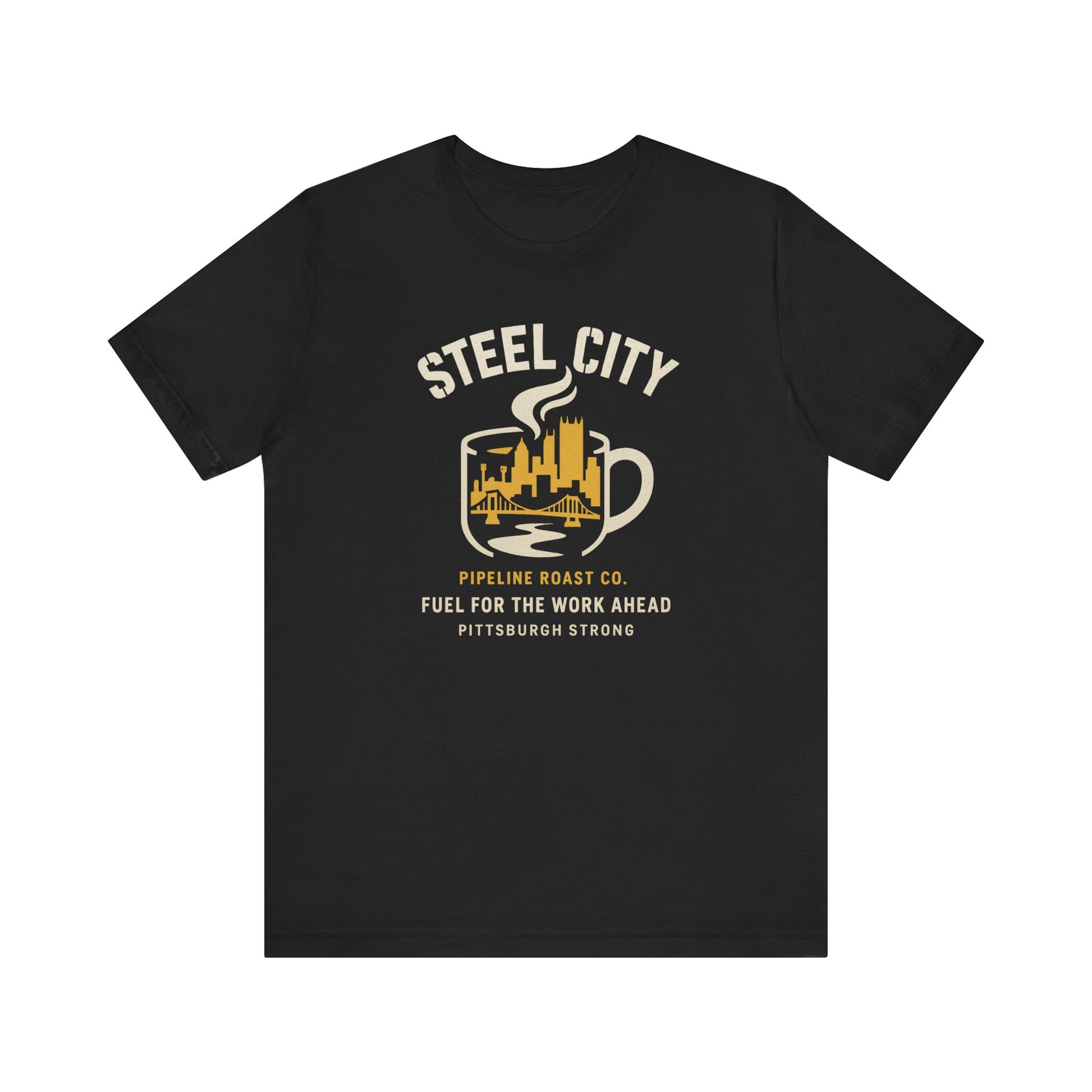 Pittsburgh Strong Coffee Tee, Short Sleeve Shirt, Unisex Graphic T-Shirt, Casual Wear, Gift for Coffee Lovers, Pittsburgh Pride